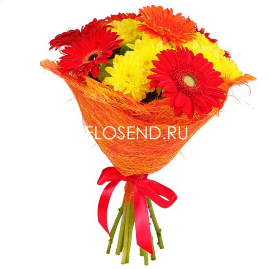 Букет «7 красных гербер и 4 хризантем»