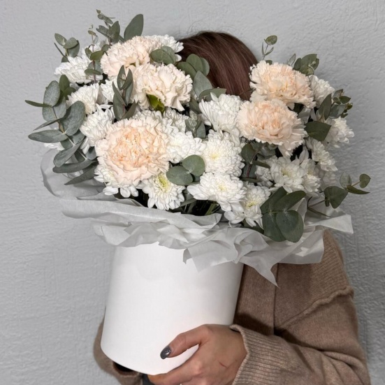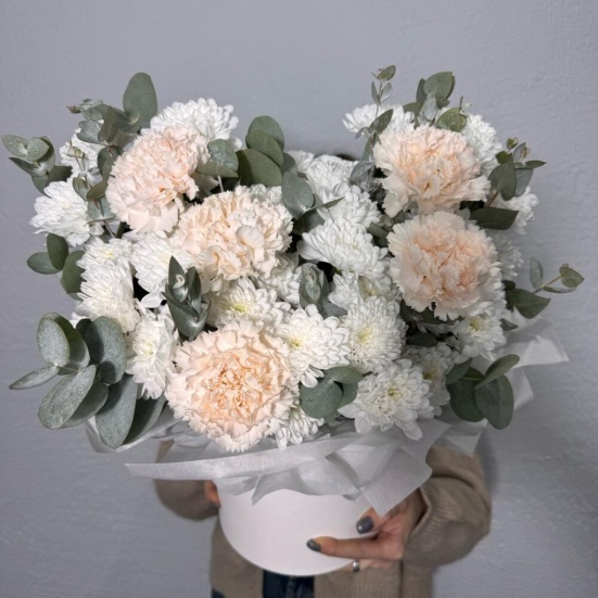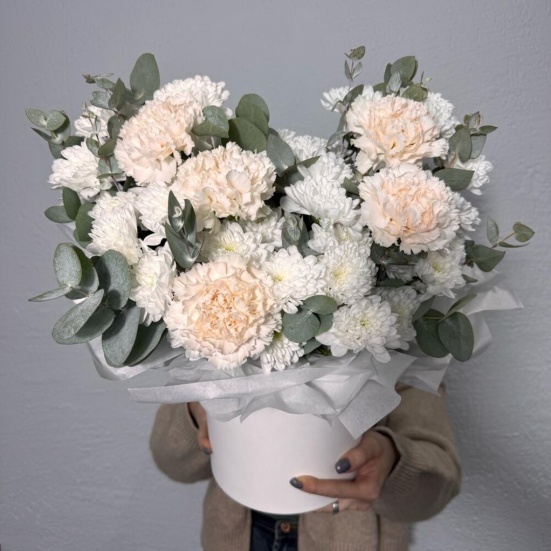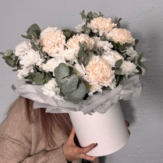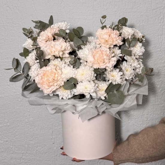 Коробка из кустовых хризантем и диантуса в Евпатории